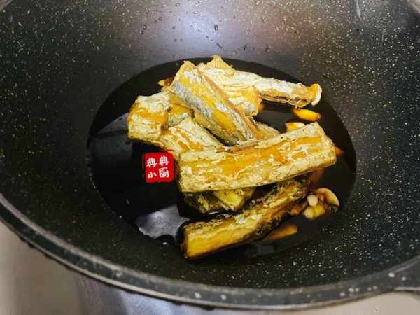 准备一碗料汁。生抽,老抽,白糖,蚝油,盐,清水拌均匀。倒锅里再把炸过的带鱼放进去,烧开之后转小火煮一会儿,等入味了,再转大火收汁就可以了。