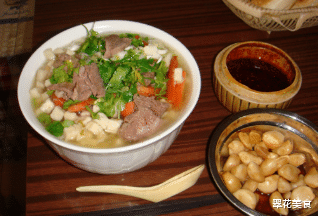 最后便是搅团了。这一道小吃在陕西还是比较难见的,但不是因为它不够好吃,而是因为这道小吃做起来非常的麻烦,而且很费时费力,所以在外面也很少见到买的。如果在陕西有当地的朋友不妨借个人情让你的朋友为你做上一锅,当然,没有当地朋友的也不必遗憾,虽然搅团买的不多,但浆水鱼鱼还是不难找的,虽然有些差距但也相差不大。