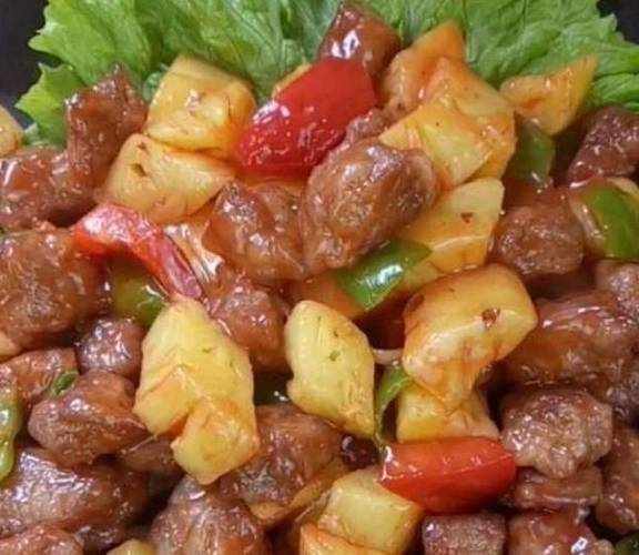 咕噜肉,又名古老肉。是一道广东的特色名菜。此菜始于清代。当时在广州市的许多外国人都非常喜欢食用中国菜,尤其喜欢吃糖醋排骨,但吃时不习惯吐骨。外国人发音不准,常把“古老肉”叫做“咕噜肉”,因为吃时有弹性,嚼肉时有格格声,故长期以来这两种称法并存。此菜在国内外享有较高声誉。市面上常见的是罐头菠萝搭配的咕噜肉。我给它这么一炒,朋友远远就闻到了香味。