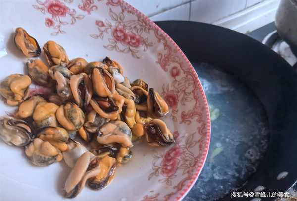 第一步:海虹是这个季节很不错的海鲜,海虹的营养很丰富,素有“海中鸡蛋”之称。把海虹买回家,充分冲洗干净,放到篦子里大火蒸5分钟,出锅去除外壳,取里面的海虹肉。