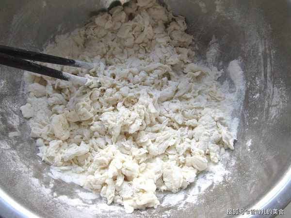 第六步:用筷子搅拌均匀,面疙瘩就做好了。做面疙瘩最主要的就是不要把水放多了就可以做的很好。