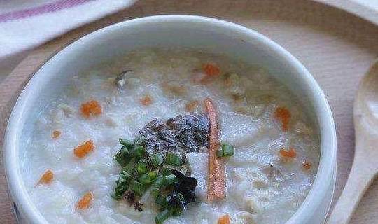 2、做法:上一顿没吃完的米饭也是可以做粥的。首先清理鱼肉,将鱼骨头挑干净然后捣碎。萝卜和胡萝卜洗净后也切碎一点,葱切葱花。开火,将米饭、海带清汤/捣碎的鱼肉以及萝卜碎一起放入锅里同煮,等煮至黏稠的时候放一点酱油调味,再煮几分钟即可。