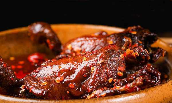 3.炒锅内留底油,烧热后下人葱花、姜片、番茄酱、咖喱油煸炒,再放入柠檬、葡萄酒、辣椒油、精盐、白糖、味精、鸡汤烧沸,用小火煨蘼至熟,后转大火收汁。