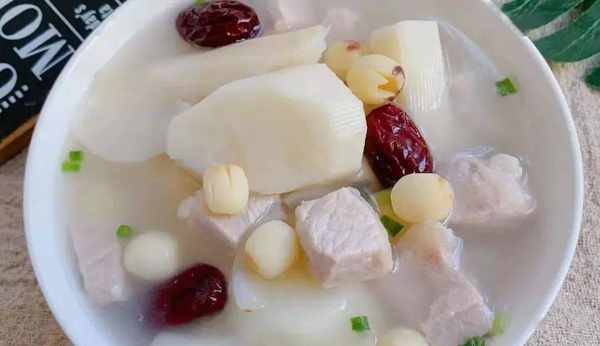 食材:山药、莲子、百合、瘦肉、红枣、姜1片、葱少许