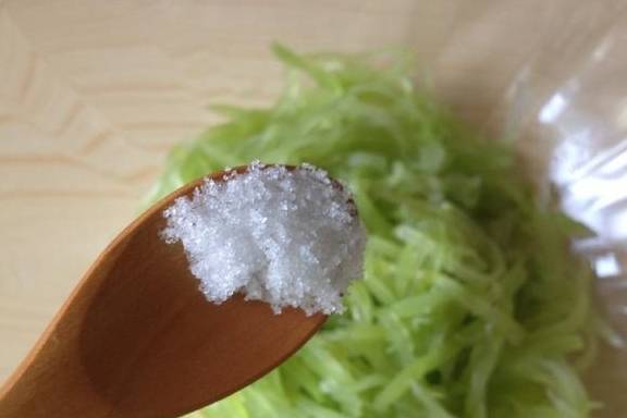 3.切丝,并放1g盐腌制10分钟