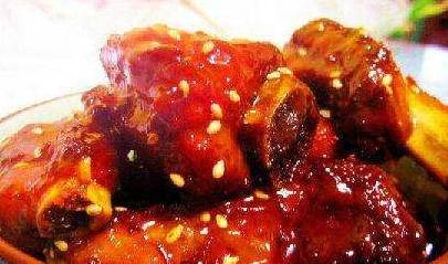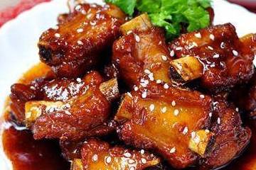 食材:排骨、葱姜、料酒、酱油、醋、糖、芝麻、盐