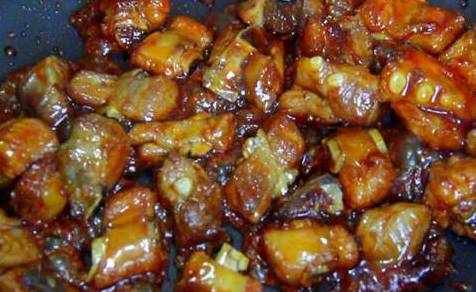 3、起火,倒油,等油热后,把排骨到进去,炒至排骨表面金黄。把调好的汁倒进去,大火烧开,翻炒均匀,然后小火慢炖10分钟左右,最后大火收汁,结束盛盘,撒上芝麻,一份完美的糖醋排骨就完成了。