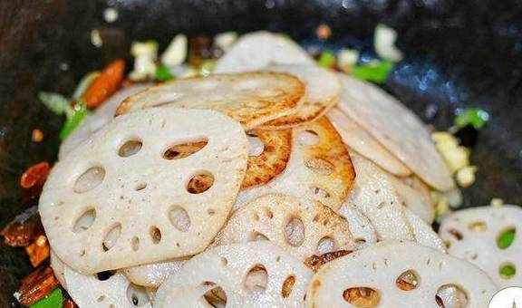 8、加入藕片翻炒;