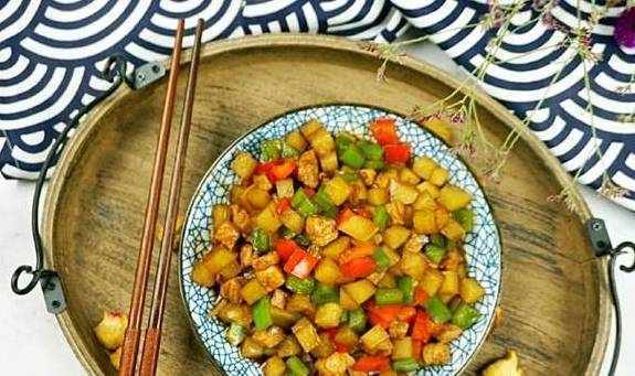 母亲是在买菜回来后开始忙活她这个手工活的挑选,晚饭就我来厨房准备喽。看了老人家买的菜,我就知道母亲准备做什么了。北京人到了冬天总喜欢用土豆做菜吃,土豆易储存,可以一次买上不少。将土豆、柿子椒、肉等切小丁一起炒,也有人是加入胡萝卜丁,这样的炒三丁或者炒四丁,色泽上鲜亮多彩,口感咸香中带有清脆,拌饭吃最香。这种经典的家常菜,您在餐厅可吃不到,但在寻常百姓家,这可是最朴实、最可口的菜肴呢。