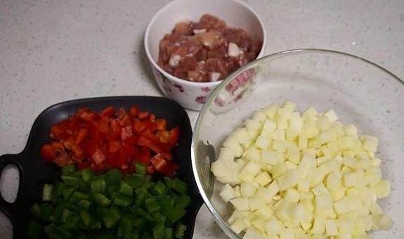 1、准备好需要的食材。这种炒丁的,还可以用胡萝卜、莴苣、水芹等,只要是口感脆脆的时蔬,都比较适宜。