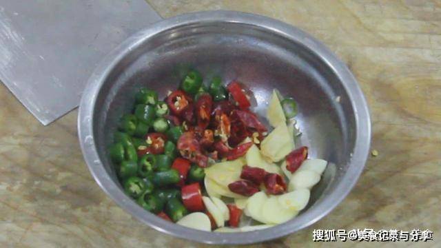 青红线椒切圈,大蒜生姜切片,红干椒一把。