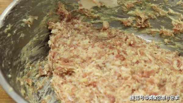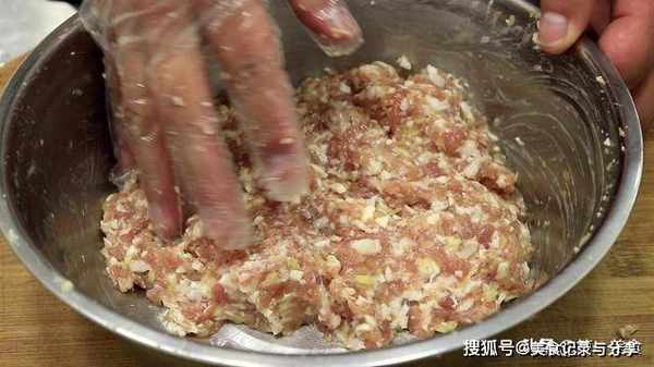 2.然后加入一点清水继续搅拌,让肉馅充分吸收水分,吸足水分的肉泥,口感才会更加滑嫩。然后打入一个鸡蛋,还要再次搅拌上劲抓匀,这个过程持续三到五分钟。