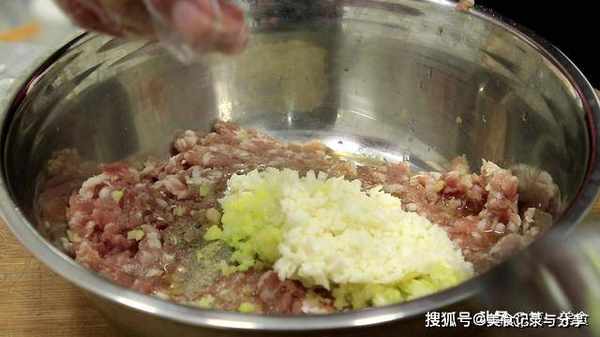 1.处理食材:大葱白破开以后切成葱花,生姜一块和葱花一起剁碎,剁的越碎越好。山药削去外皮先切成片再切成碎粒。肉末放在盆中,加入食盐2克、鸡粉2克、胡椒1克、蚝油3克、料酒5克、放入葱姜末和山药末,用手摔打搅拌给肉馅上劲入味。