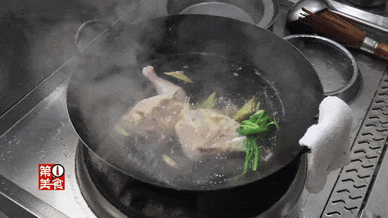 我们准备新鲜的鸡腿两个,放入清水中洗净,放在盆中备用,锅内烧水,放入一小把青花椒,加入切好的姜片和一个小葱结,加入食盐3克,把鸡腿放入锅中,盖上锅盖 ,开小火煮10分钟,10分钟以后关火,在开水中再浸泡5分钟~