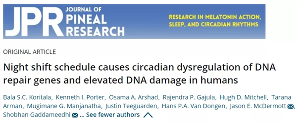 2021年3月,美國華府州立大學的研究人員發表研究指出:夜班工作會破壞癌症相關基因的自然節律,使癌症相關基因的表達時間推遲,引起DNA損傷,還會影響損傷DNA的修復速度,導致癌症風險新增。