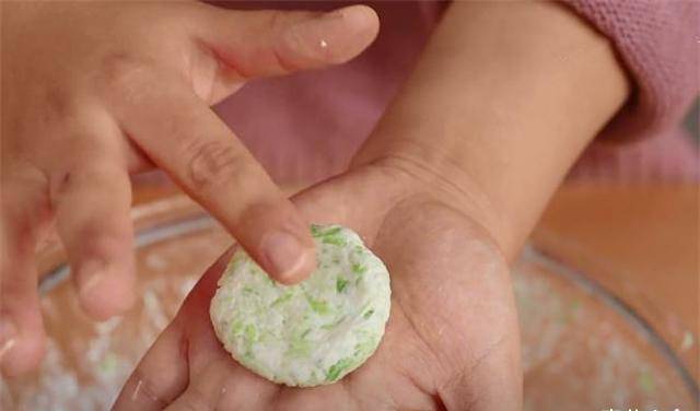 5.简单揉成球后,我们直接取一小部分,把瓷器握在手心,然后压成圆饼的形状。