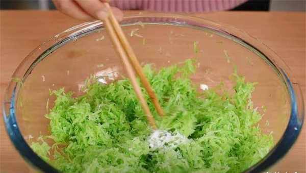 3、萝卜丝不烫的时候,我们加一勺盐。对于碱性面条,我们可以加一点来保持它的翠绿色。