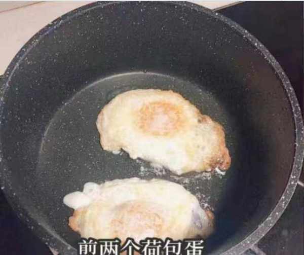 第四步:锅底提前预热一会,撒少许盐,放入两个土鸡蛋,让鸡蛋炒至凝固,加入一些葱丝和姜丝,加适量的开水烧开。