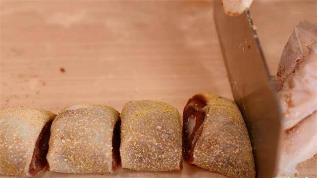6、卷好后,用刀切成小块。