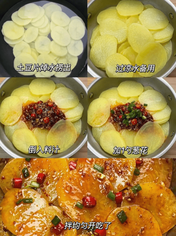 制作步骤:1、土豆切片,清水冲洗一遍,水开后下锅煮至七成熟,大概煮3-4分钟;