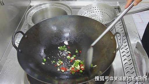 锅内烧油,油热后,倒入大蒜和辣椒圈,快速翻炒,炒出香味。