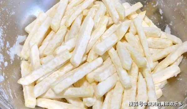 8、倒入油炸土豆条。