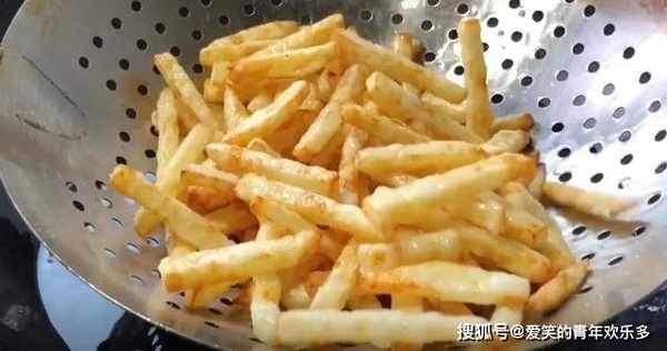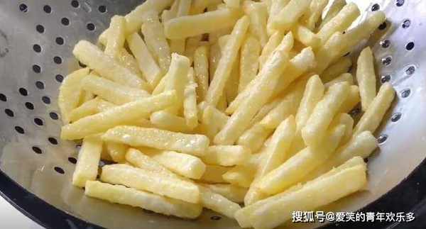 5、继续复炸第二次,也是油炸3分钟捞起,土豆条变得更金黄酥脆。