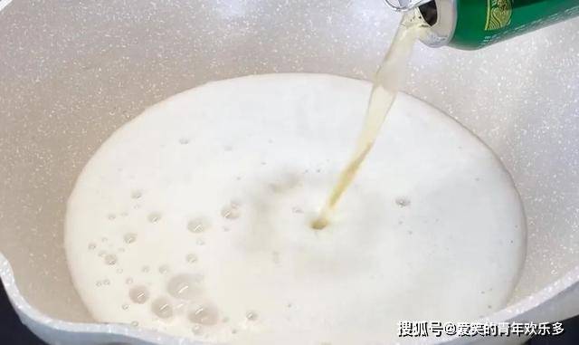 5、准备一口锅,里面倒入一罐啤酒。