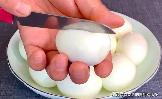 3、剥壳的鸡蛋,在外面切下刀痕,方便入味。
