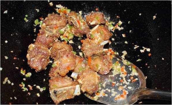 这是一道在广东非常有名的排骨做法,椒盐其实并不是指花椒盐,而是用青红椒粒和蒜茸爆香,把炸好的原料丢进去,放少许盐和味精大火翻炒。有些需要放上好的黄酒,当黄酒倒入热锅,瞬间激发出熏人欲醉的香气,让人不禁食指大动,因此选用优质黄酒是椒盐排骨的重中之重!