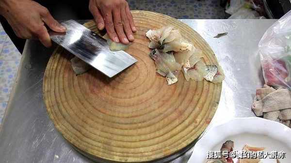 2.片去鱼的鱼刺,鱼皮朝下,斜刀片成鱼片,也可以让市场的卖家帮你片好鱼片,鱼片不要太薄,也不要太厚,
