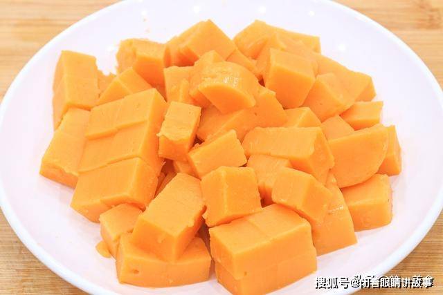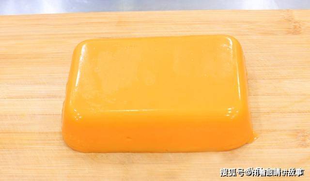 6.夏天做的话,也可以放入冰箱中冷藏,全部定型以后取出来,切的时候可以在刀上抹点清水防止粘刀,大小可以随心而定,吃的时候配上蜂蜜、炼乳、或者果酱更加美味。