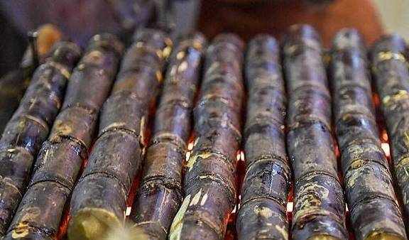 2、烤甘蔗听说过烤肉、烤鱼、烤玉米,没听说过烤甘蔗吧。烤甘蔗不仅味道甜美,又不会太凉。想吃甘蔗,又怕胃寒的人,可以试试烤甘蔗。