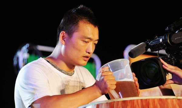 因此,在看到比赛现场那1500毫升的酒桶后,任光超非常自信,他认为这还没有自己平时用的水杯大,他一定会获得冠军的。