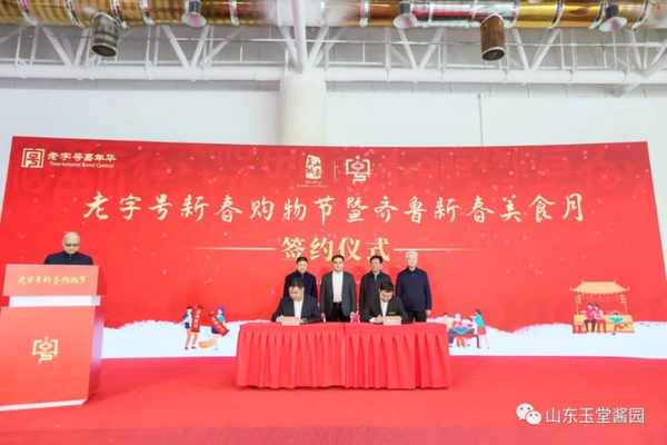 开展当日,玉堂酱园与超意兴达成合作,现场签署战略协议,未来双方将在产品体系、市场渠道、品牌战略等方面深度融合,“酱菜”与“把子肉”共同抚慰市民舌尖上的味蕾,携手共创百年品牌新局面。