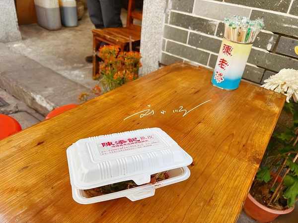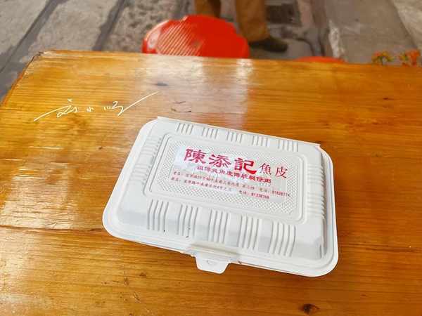 我们拿到“鱼皮”之后,餐盒上还印着大大的“陈添记鱼皮”,从开始点单直到现在,我们都没有发现什么不一样的地方。