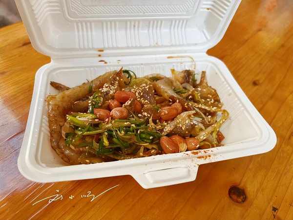打开餐盒,里面有“鱼皮”、“花生”、“芝麻”以及其他简单的调味料,吃起来脆脆凉凉的,味道上我觉得中规中矩吧,还算不错,不过并没让我有惊艳的感觉。