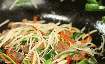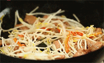 13、加入豆芽至锅中翻炒均匀。