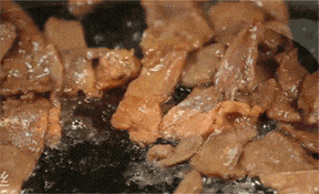 11、牛肉放入锅中翻炒至变色。