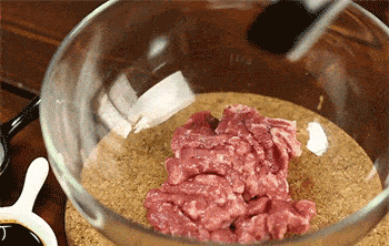 3、牛肉搅拌均匀。
