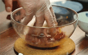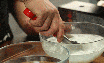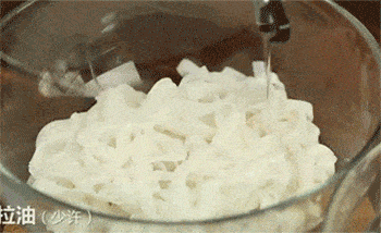 9、倒入适量的色拉油至米粉中,并将其搅拌均匀。