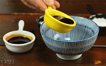 6、生抽、老抽、盐、鸡精、蚝油、糖依次放入小碗中,并将调料搅拌均匀。