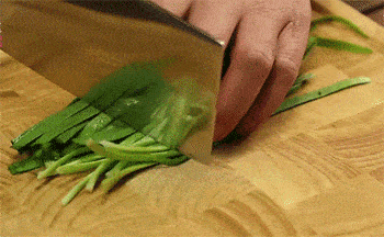 4、韭菜切成小段。