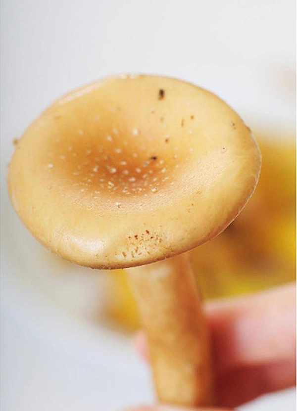 可爱的酒杯蘑菇外形好童话喔,菇伞中央微微的凹陷,看起来真的能装酒呢。肉质厚而脆,用烤的、用炸的都好吃。