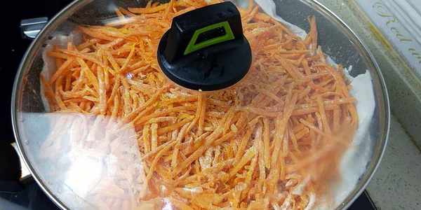2、关火之后,要快速的打开盖子,避免多余的水蒸气滴在胡萝卜上面,影响口感