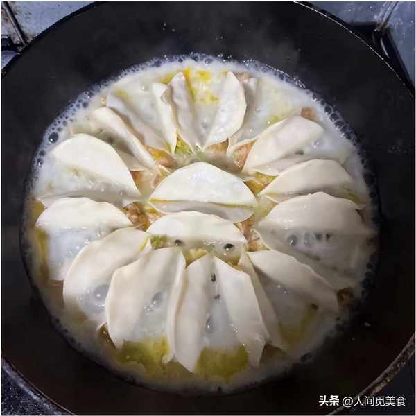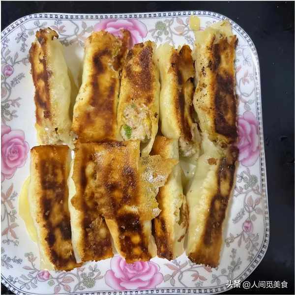 白菲菲最爱的是这个锅贴,婆婆做的是开口锅贴,也就是面皮不完全密封起来,这样你可以看到里面的馅儿,隔老远就能闻到那股香味,里面是猪肉大葱,为了丰富口感,还放了玉米馅儿,吃起来更鲜甜了。烙的外焦里嫩,锅贴底部还有冰花,一口一个嘎嘣脆,肉馅儿又很鲜美,汁水丰盈,咬下去直接爆汁,热腾腾的特别好吃。