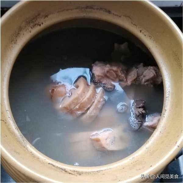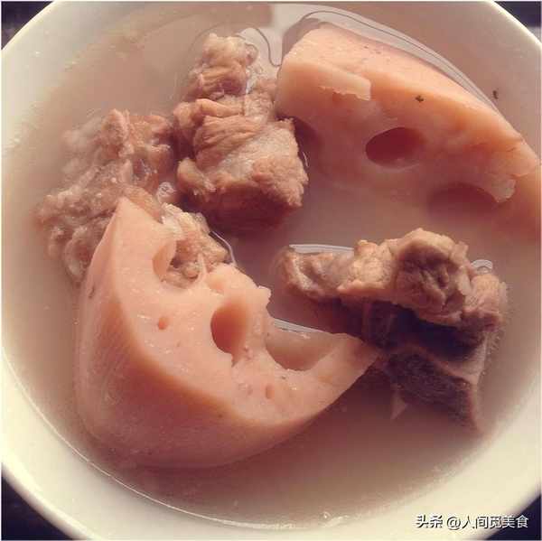 然后是一个排骨莲藕汤,婆婆说他们老家最爱喝这个汤了。排骨是她精挑细选的精细肋条,切成小段方便入口,因为炖煮时间长,所以很软糯,一抿就脱骨,莲藕也是直接拉丝,非常软糯香甜。