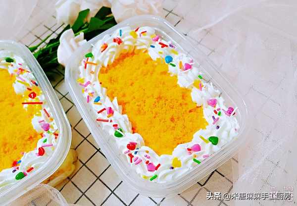 26.蛋糕盒子做好啦。表面可以撒点装饰(为了哄娃),不撒也可以啊。