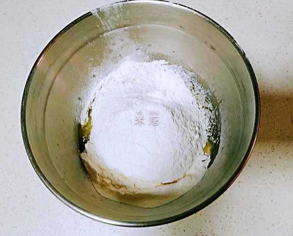 4.过筛低筋面粉和玉米淀粉至上述混合物中。