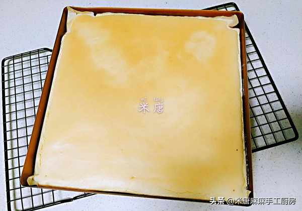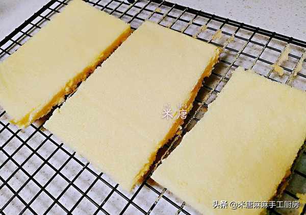 出炉之后取出蛋糕片,倒扣在烤架上晾凉。
